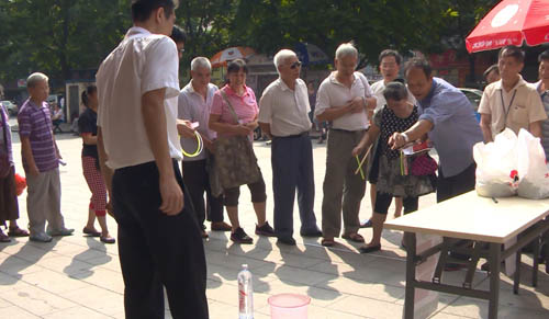 當(dāng)天陽(yáng)光普照,溫暖入心,100多位老人家興致勃勃的前來(lái)參加養(yǎng)之尊組織的筷子投壺、套圈、夾彈珠、吹乒乓球等游園活動(dòng),活動(dòng)中按照指定要求完成簡(jiǎn)單的小任務(wù),即可得到門店贈(zèng)送的健康小禮品。路過(guò)的老年朋友看到大家玩的不亦樂(lè)乎也紛紛加入。為了提高活動(dòng)氣氛,主持人還進(jìn)行現(xiàn)場(chǎng)有獎(jiǎng)問(wèn)答、驚喜幸運(yùn)大抽獎(jiǎng)活動(dòng)。養(yǎng)之尊還特別邀請(qǐng)了社區(qū)的優(yōu)秀男中音為大家高歌一曲《草原上不落的太陽(yáng)》,各位老友記拍著手搖著頭跟唱,將活動(dòng)推向了高潮。