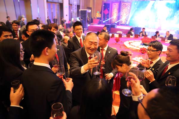 營銷一線同仁向太陽神事業(yè)的創(chuàng)始人懷漢新董事長敬酒